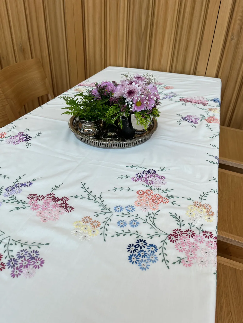 Flowers and vintage tablecloths